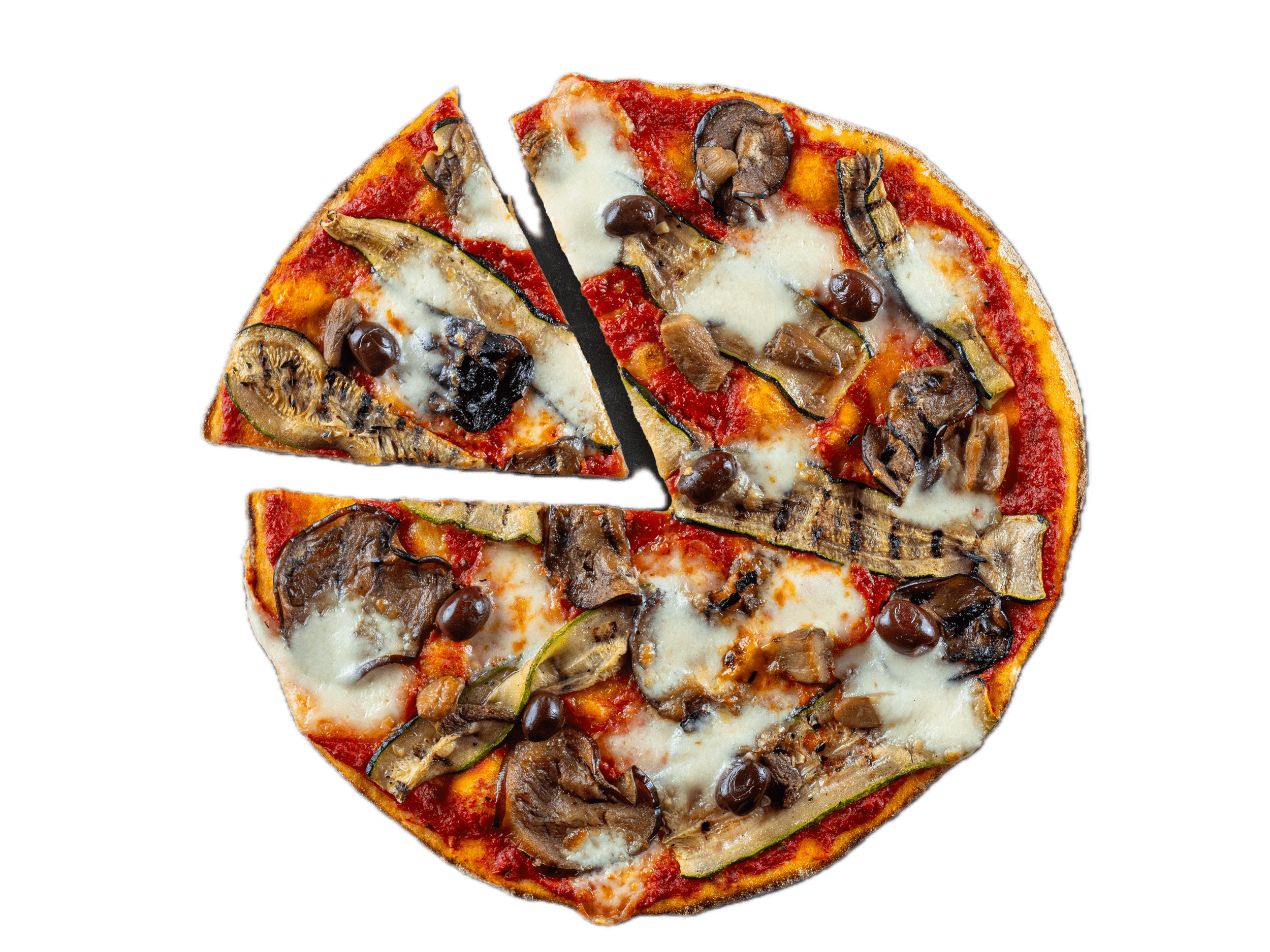 Pizza, Faina integrala de pizza), Mozzarella -110g, Sos de rosii pentru pizza -100g, Vinete -40g,